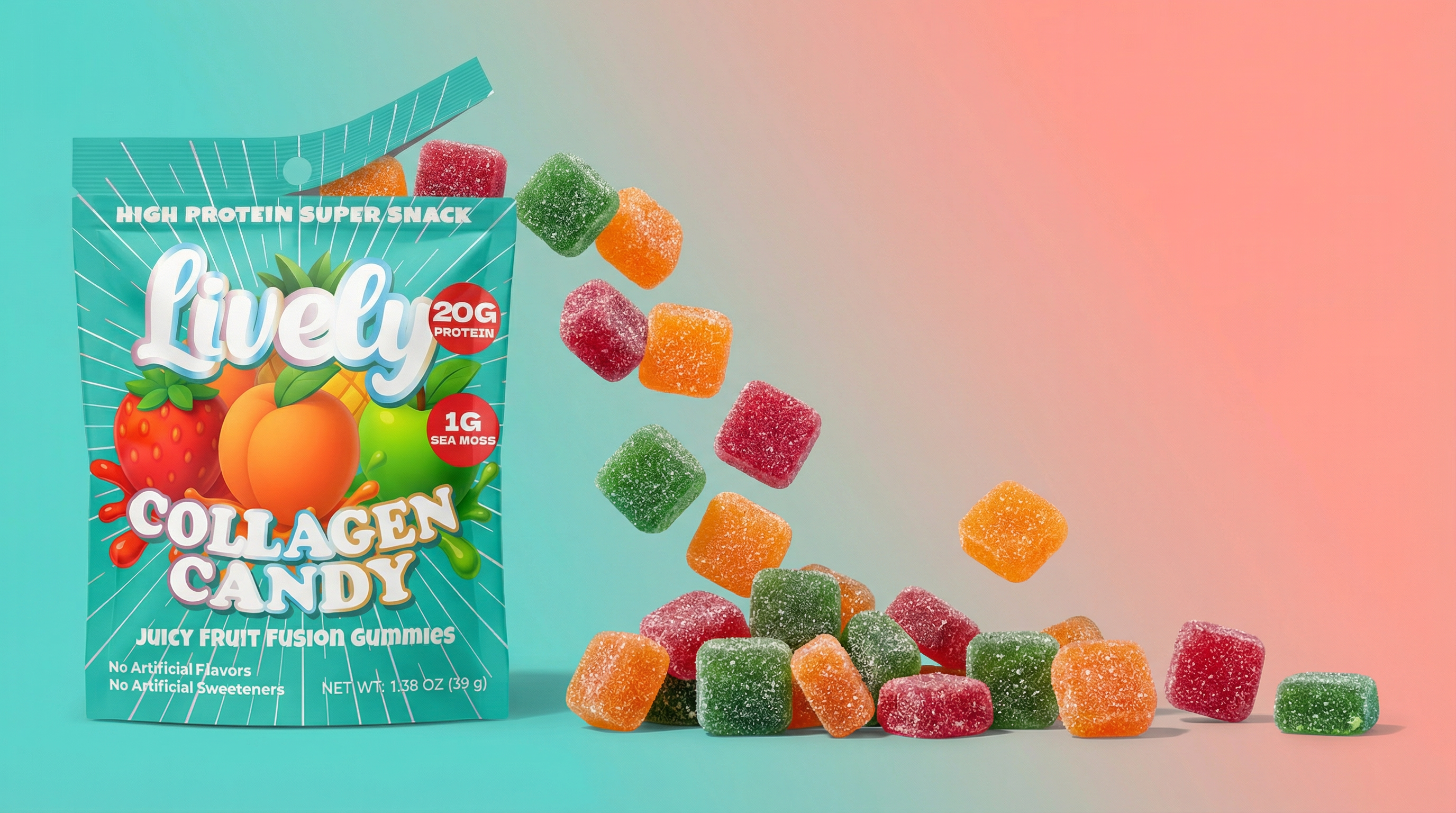 A juicy collagen sweet with sea moss and 20 grams of protein from collagen peptides. Candy level taste, real wellness benefits, zero compromises.